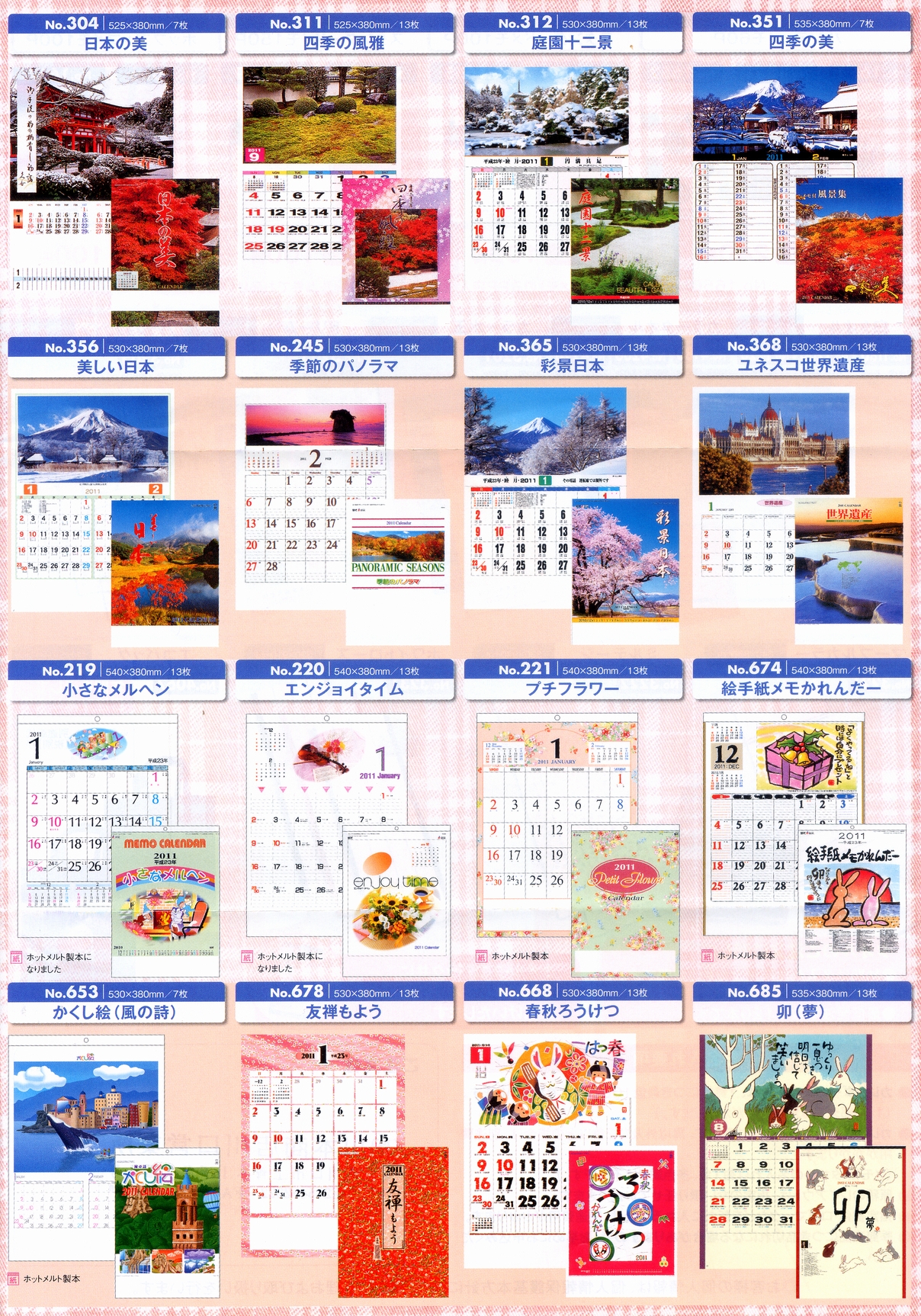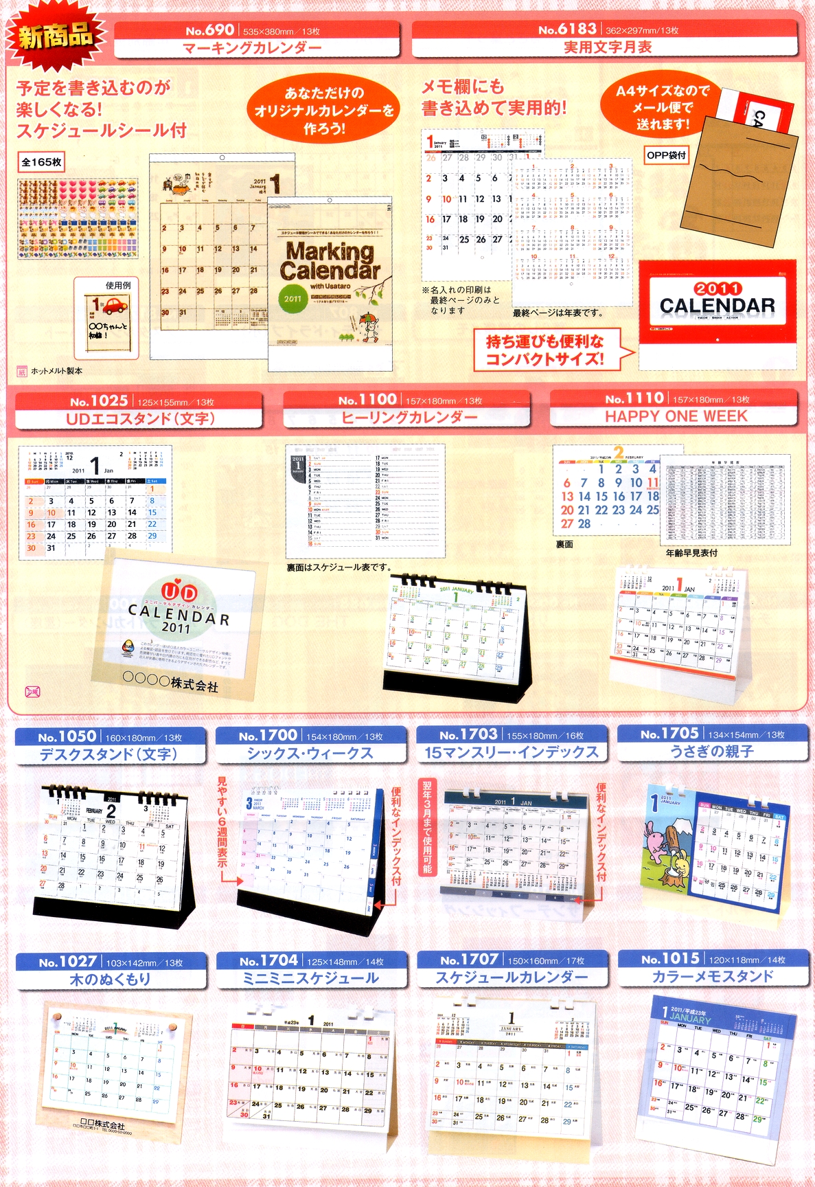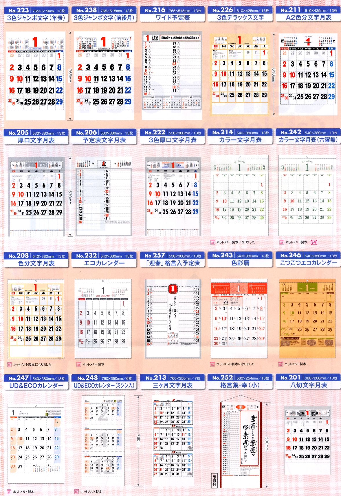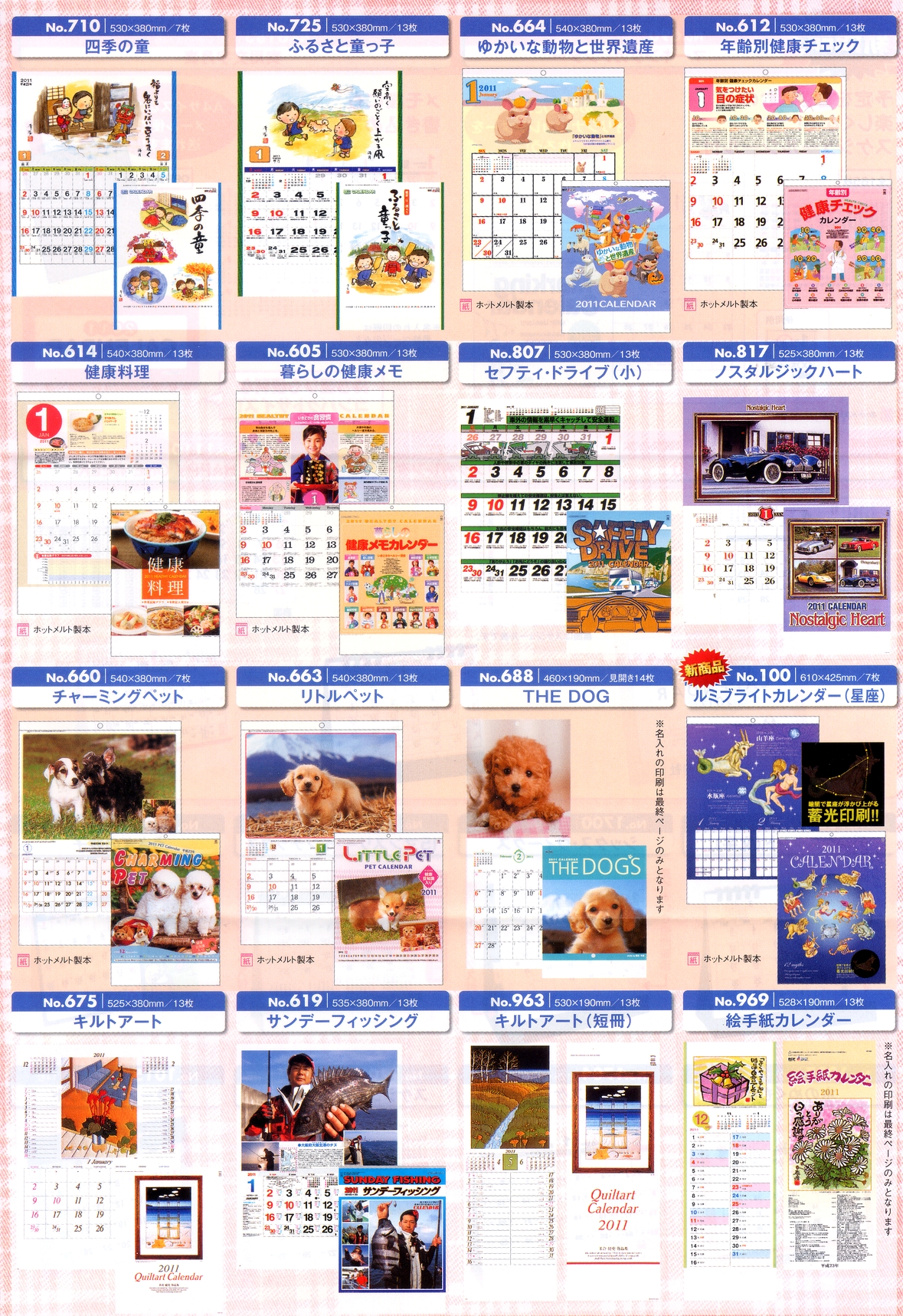 ※カレンダーのお申し込みは、1銘柄につき最低100部以上でお願いします。