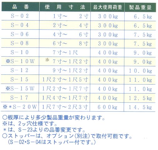 使用寸法表は