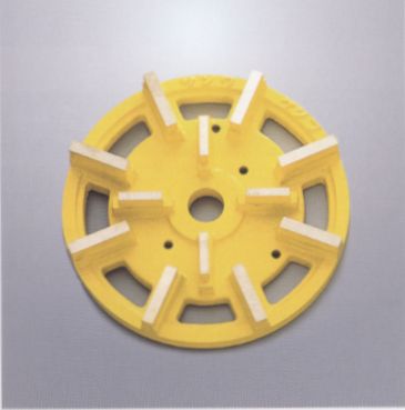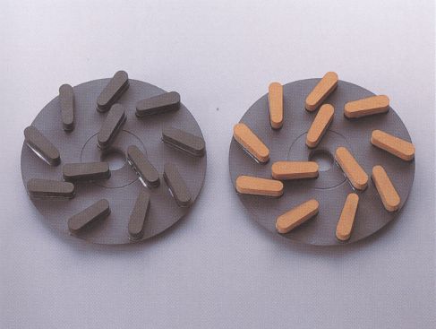 研磨機用 荒削りから中仕上げまでの工程で使用するコストパフォーマンスの優れた工具です。切れ味重視で、低い加圧や硬い石材の加工に適しています。チップ周囲を樹脂で巻き、研磨作業時の欠けを減少すると共に、加工材からチップが脱落することを防止します。脱着可能なアルミ基盤は再利用できるので経済的にも優れています。 |