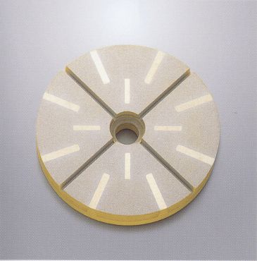研磨機用 荒削りから中仕上げまでの工程で使用するスタンダード工具です。サミットーメタルのチップ間を樹脂埋め加工しました。研磨作業時の欠けを減少するとともに、加工材からチップが脱落することを防止します。 |