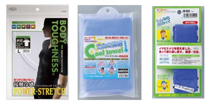 ・X-COOL:X状の断面をした特殊なポリエステルを使用。接触面積が大きいため、使用時に肌からの熱移動が多く、ひんやりとした着心地を体感できる。毛細管現象により非常に高い吸汗、速乾効果も実現!