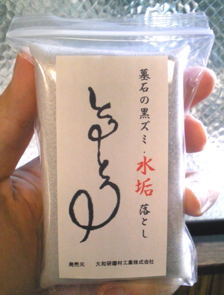 たっぷりと水をかけて「とるとる」でこすって下さい。黒ずみ、水垢、線香の灰が落ちた付着物などがツヤもとばず、傷もつかず、みるみる落ちていきます。