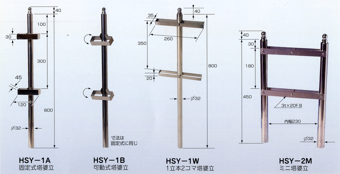 ステンレス製ミニ塔婆立(ボルト止) 図・寸法